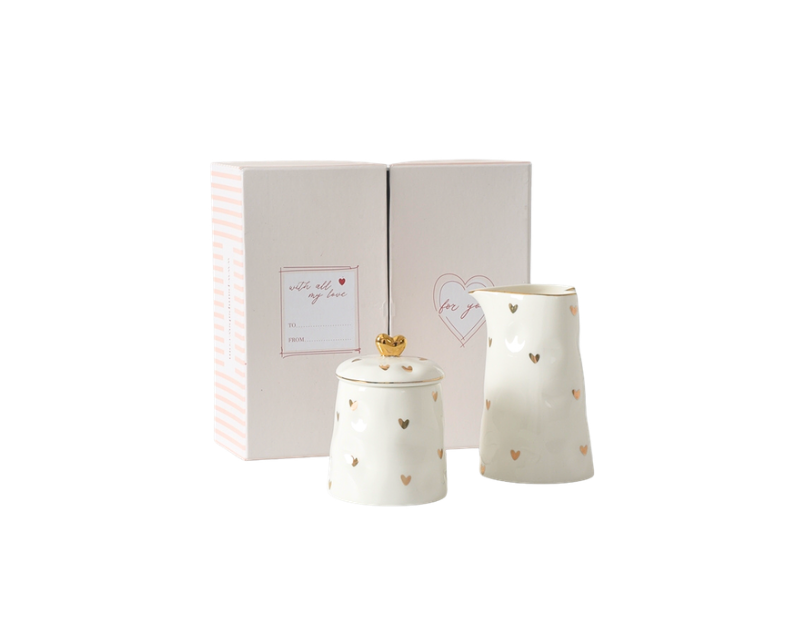 Mini Gold Hearts Sugar Bowl & Creamer Set