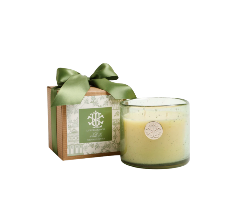 13 oz Fall Candle in Green Glass in Box With Bow