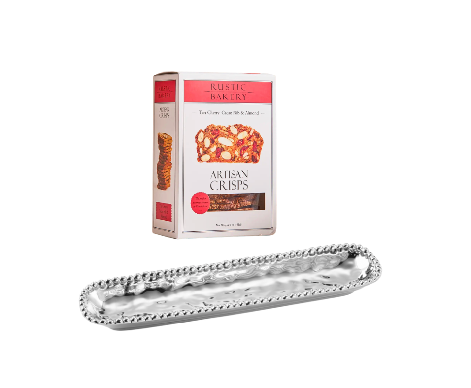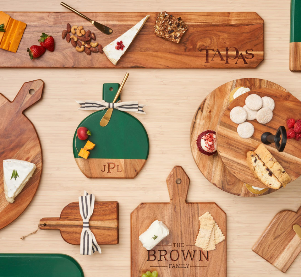 Acacia Bevel Board Green w/ Ribbon & Gold Spreader Knife | Gather | 9.75 x 8"