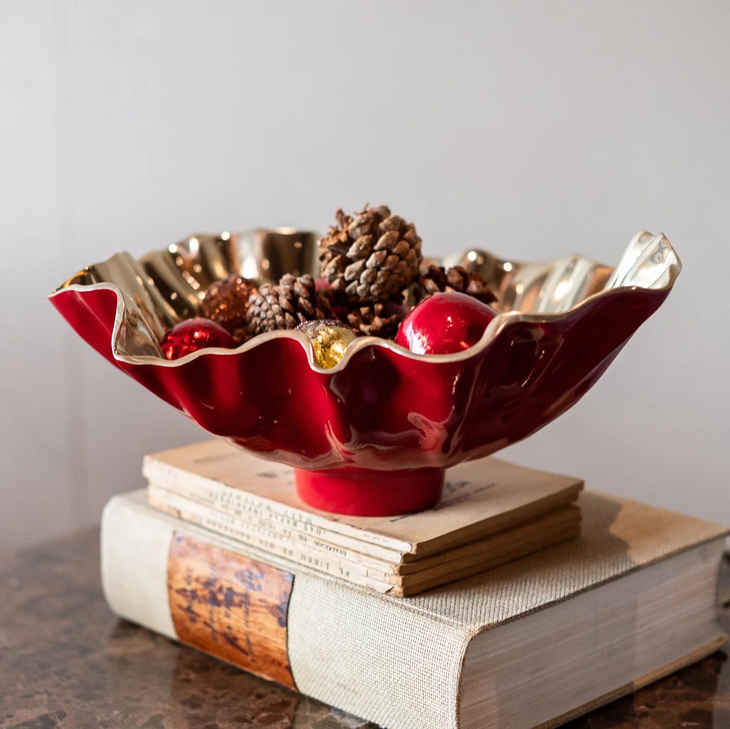 THANNI Bloom Medium Bowl (Red and Gold)