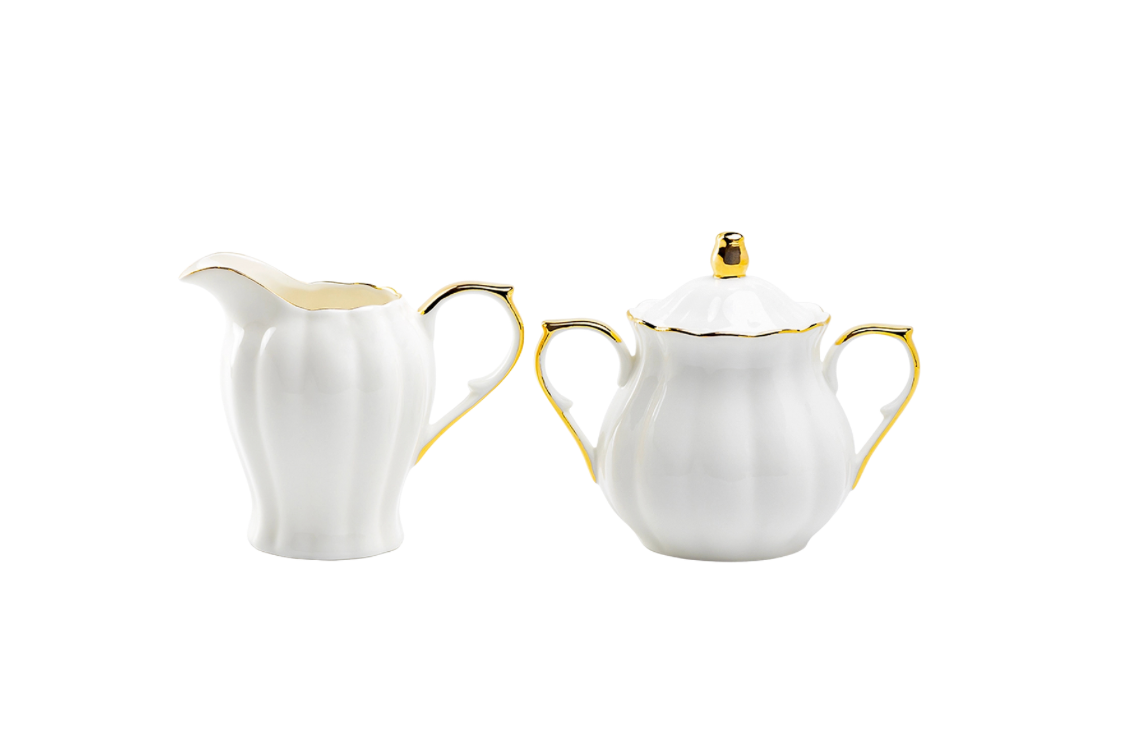 White Gold Scallop Fine Porcelain Sugar and Creamer Set