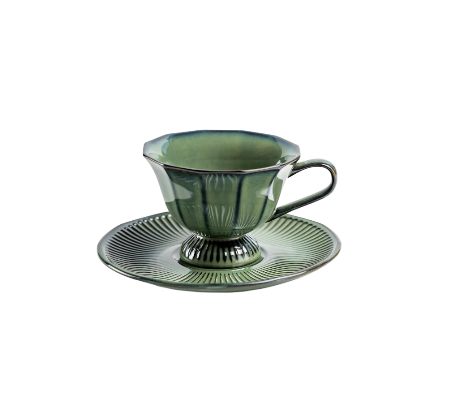 7 oz Emerald Elegance Fine Porcelain Cup and Saucer