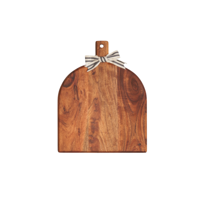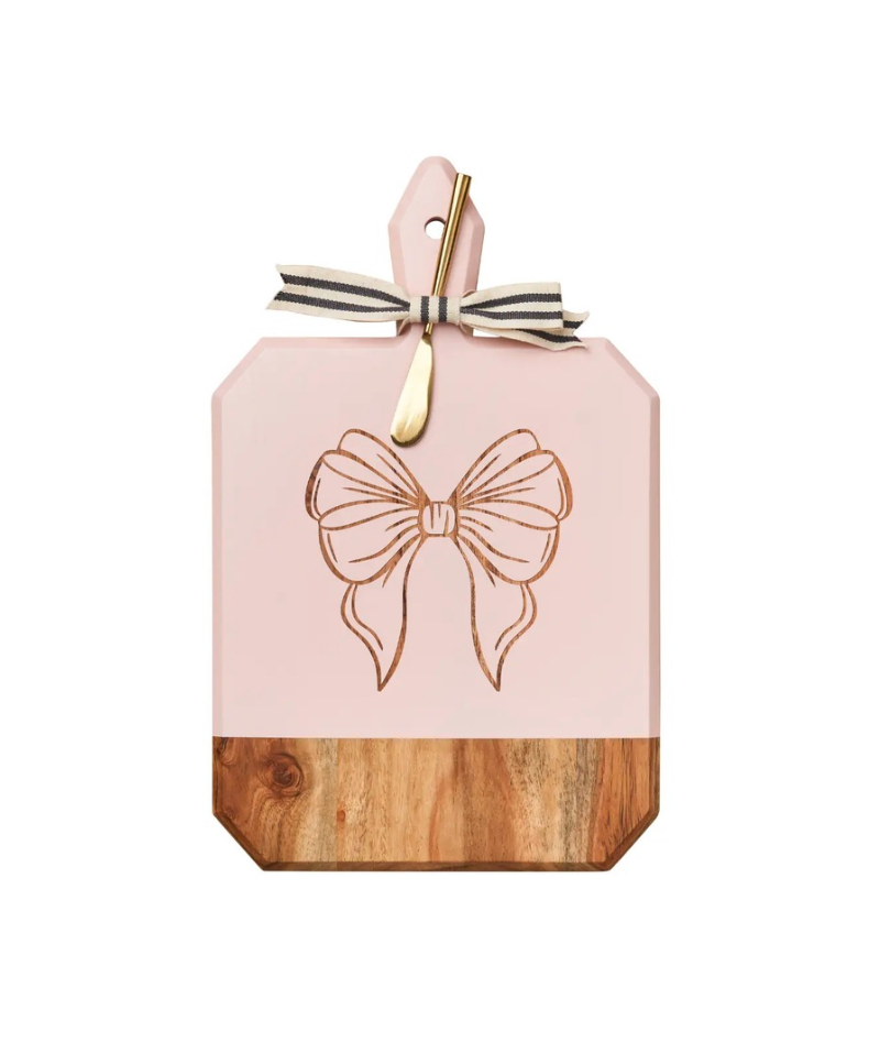 Acacia Heirloom Board in Blush with Handle Round & Gold Spreader Tied with Gray & White Ribbon | Bow | 16 X 10"