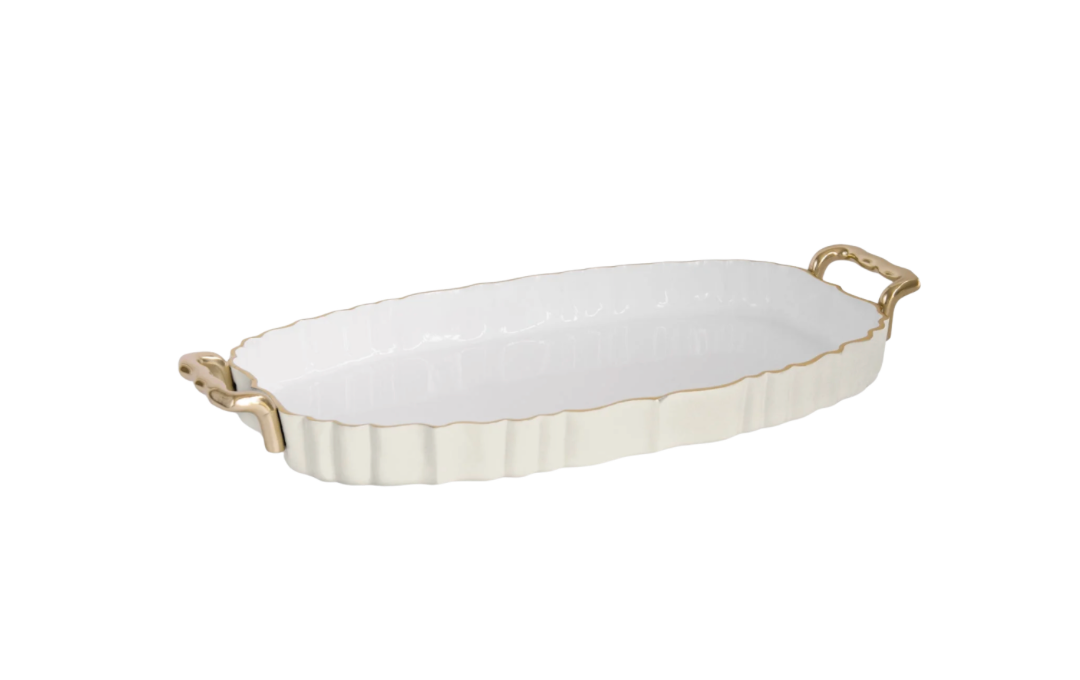 ENCANTO Vintage Fluted Oval Tray with Handles Cream and White