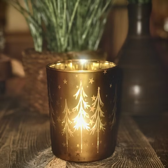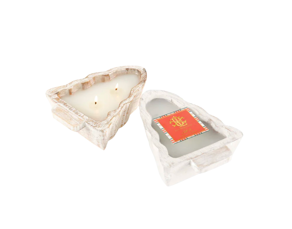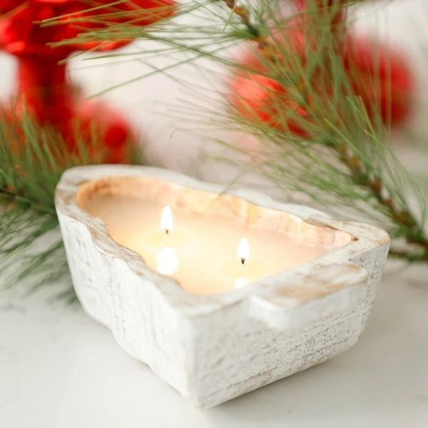 Holiday 2 Wick White Tree Wood Bowl Candle