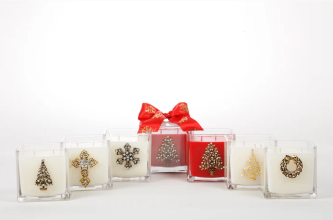 20 oz Square Candle With Snowflake - White Christmas Scent