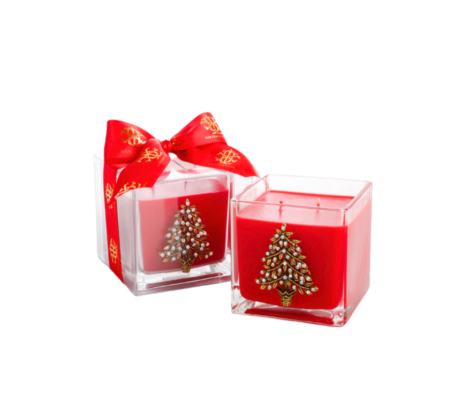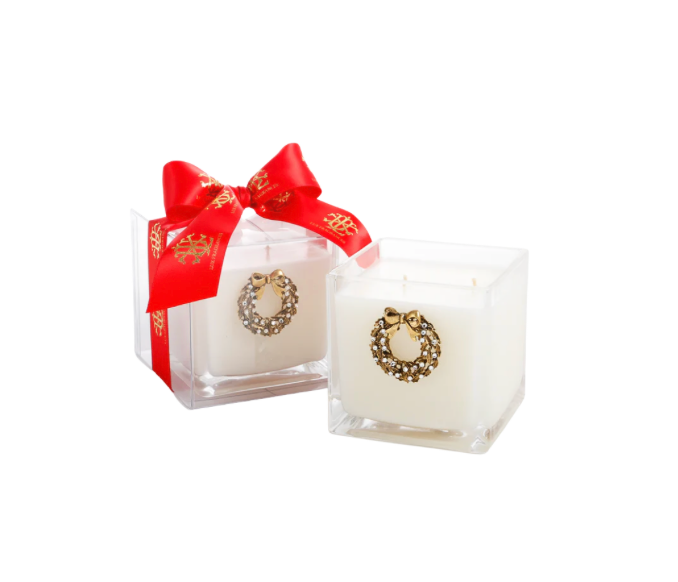 20 oz Square Candle With Wreath - Noble Fir Scent