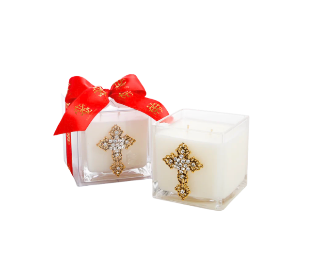 20 oz Square Candle With Cross - O'Holy Night Scent