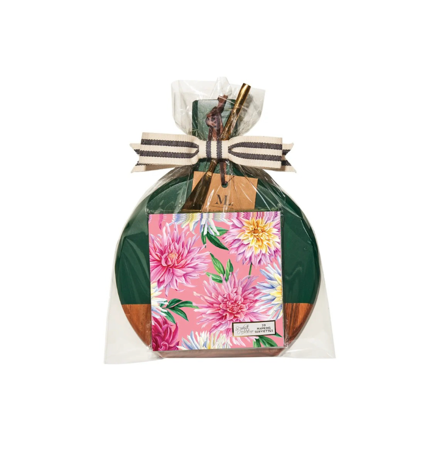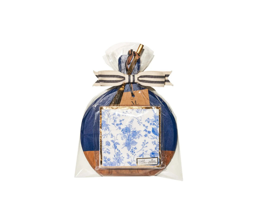 Bevel Board Kit - 9.75 X 8" Blue Acacia Medium w/ Gold Spreader, Timeless Napkin, and Ribbon