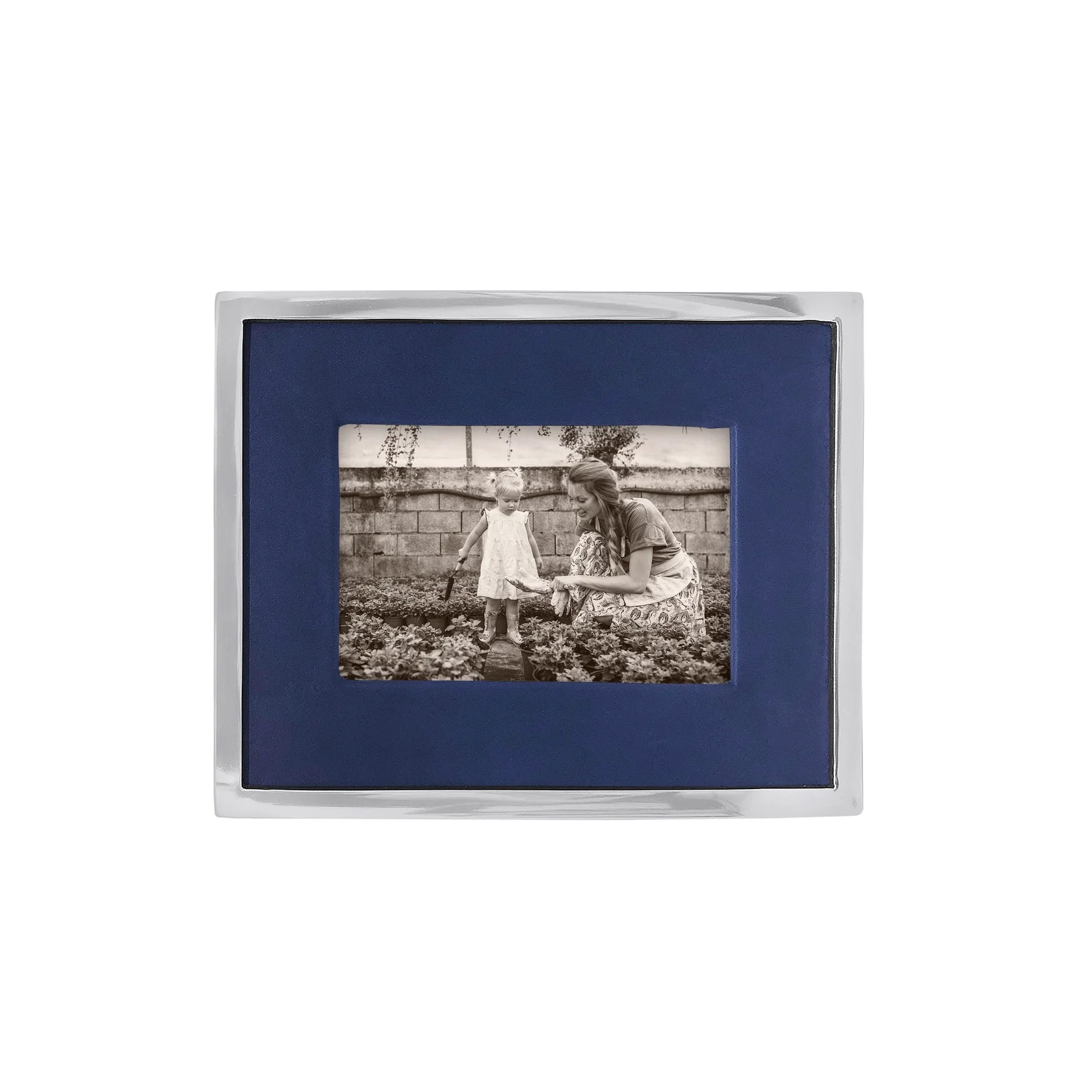 Blue Leather With Metal Border Frame