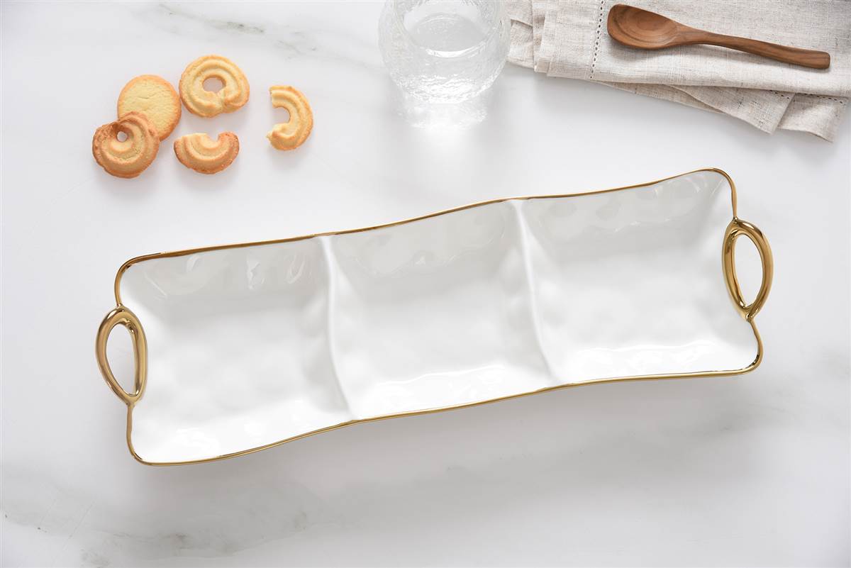 Rectangular Centerpiece - White Porcelain W/ Gold Handles