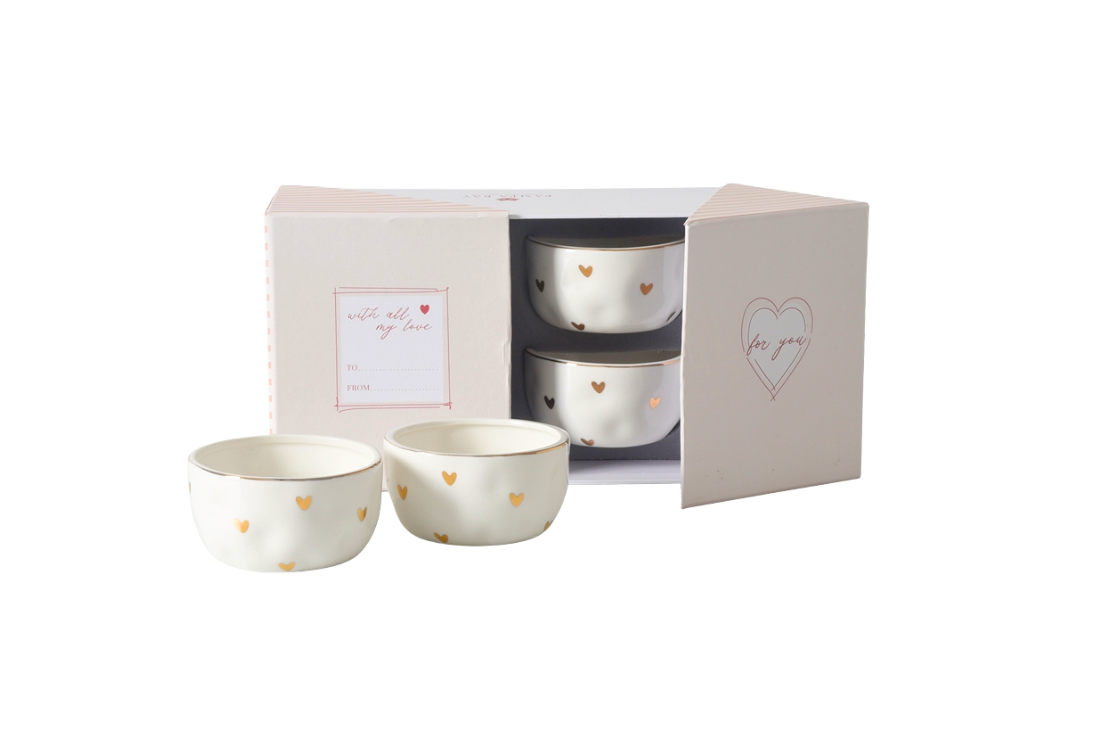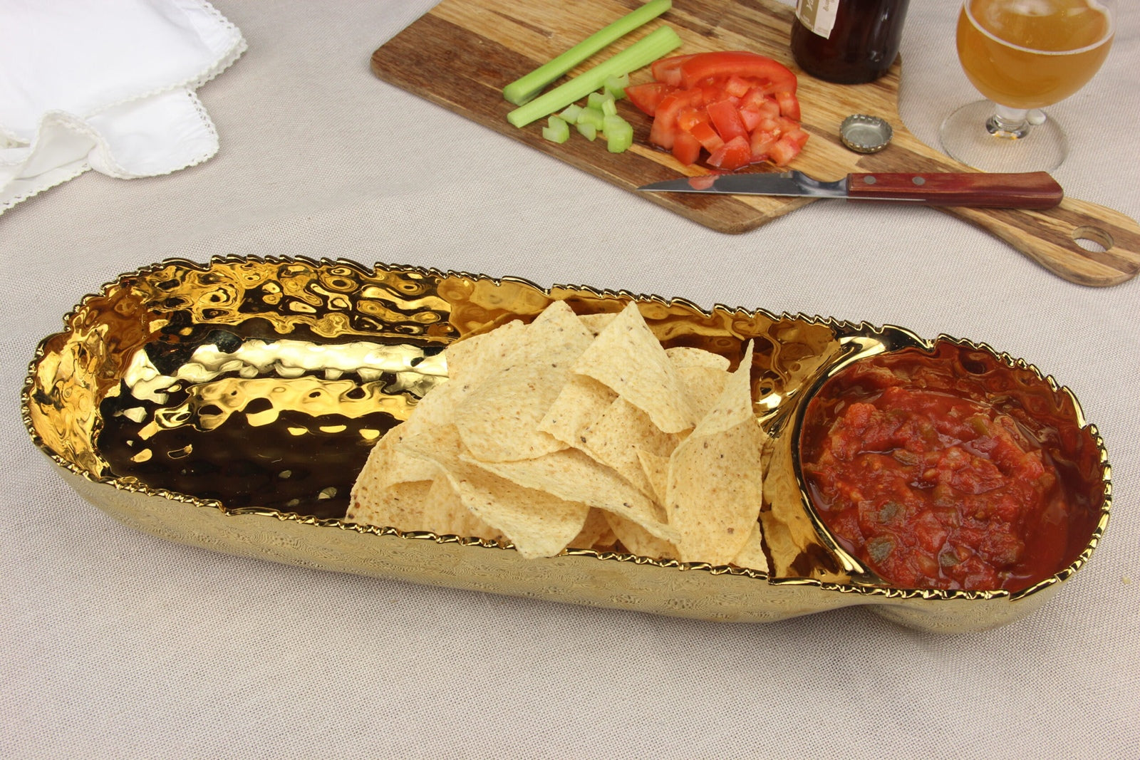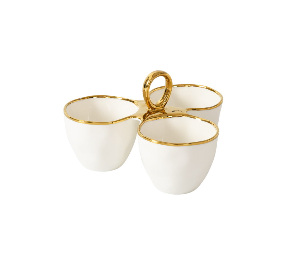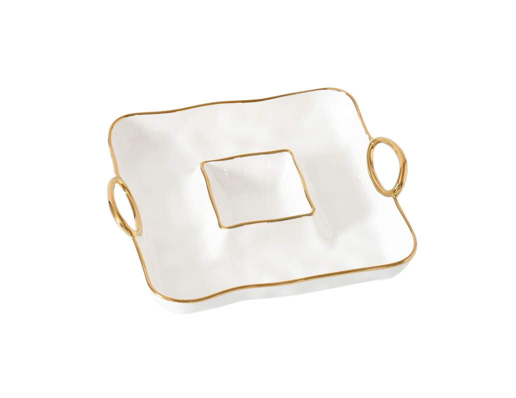 Square Chip & Dip - White Porcelain W/ Gold Handles