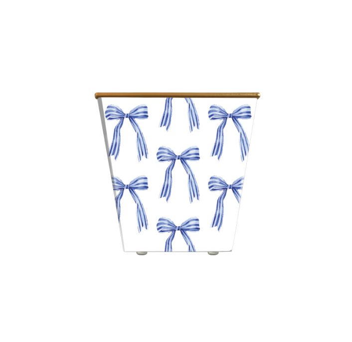 Blue-Striped Bow Cachepot Candle - Red Currant
