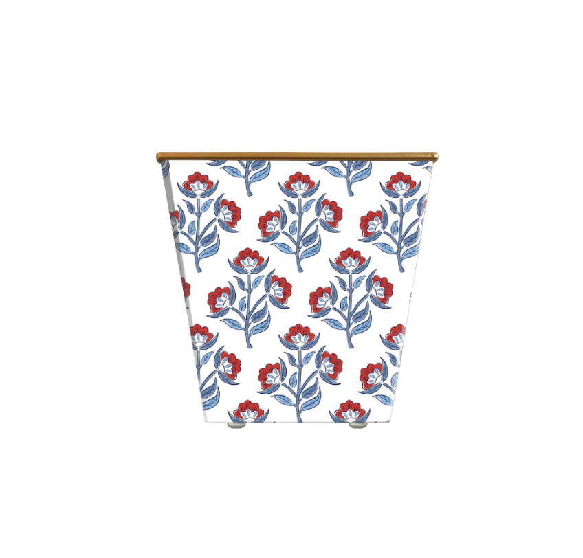 Red Floral Block Print Cachepot Candle - Red Currant