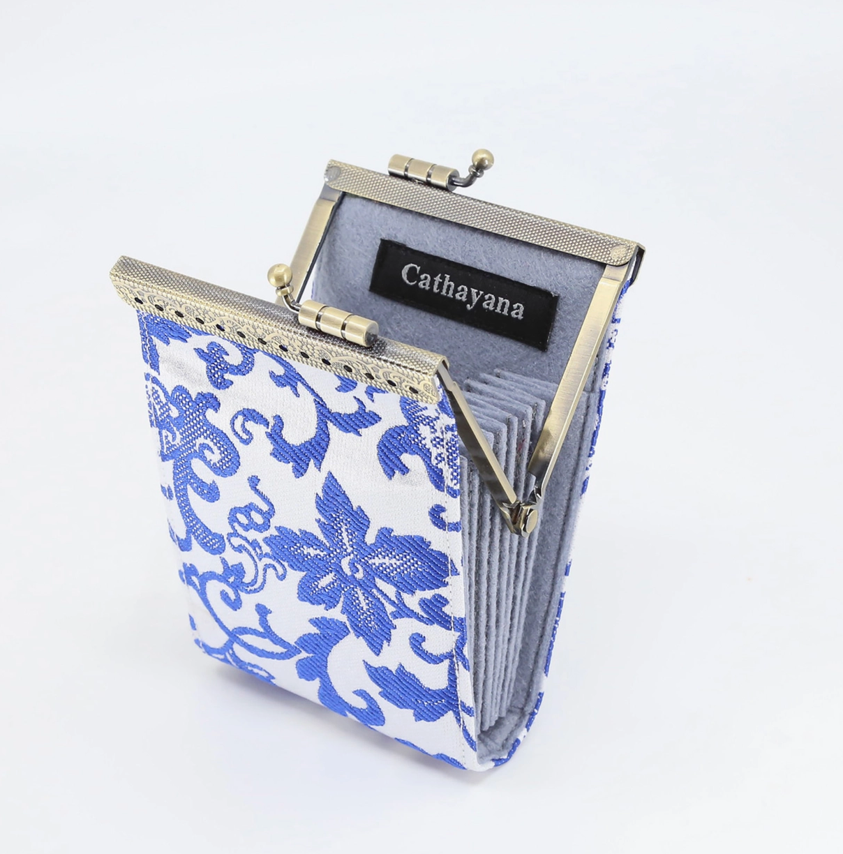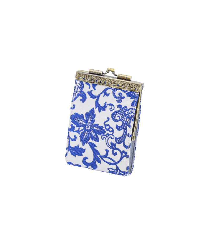 White & Blue Floral Brocade Rfid Card Holder