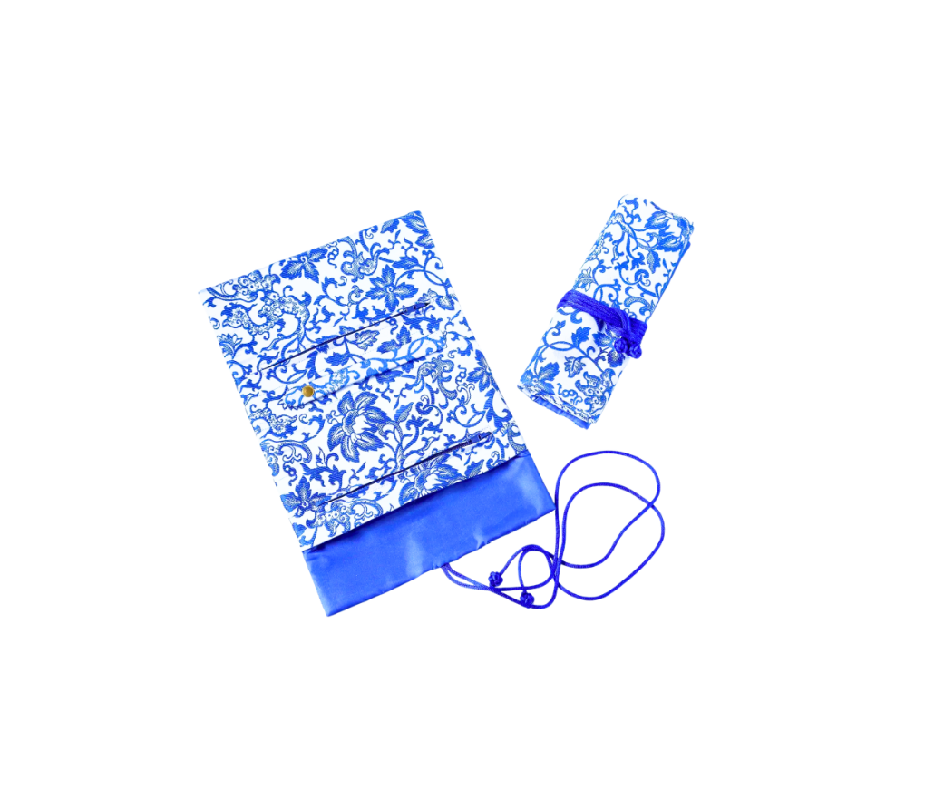 Blue & White Brocade Jewelry Rolls, Travel Jewelry Pouch