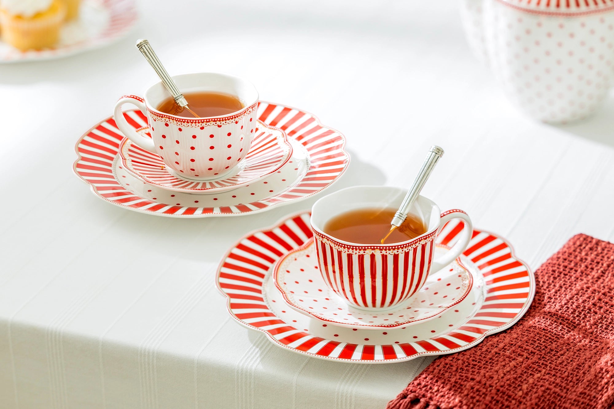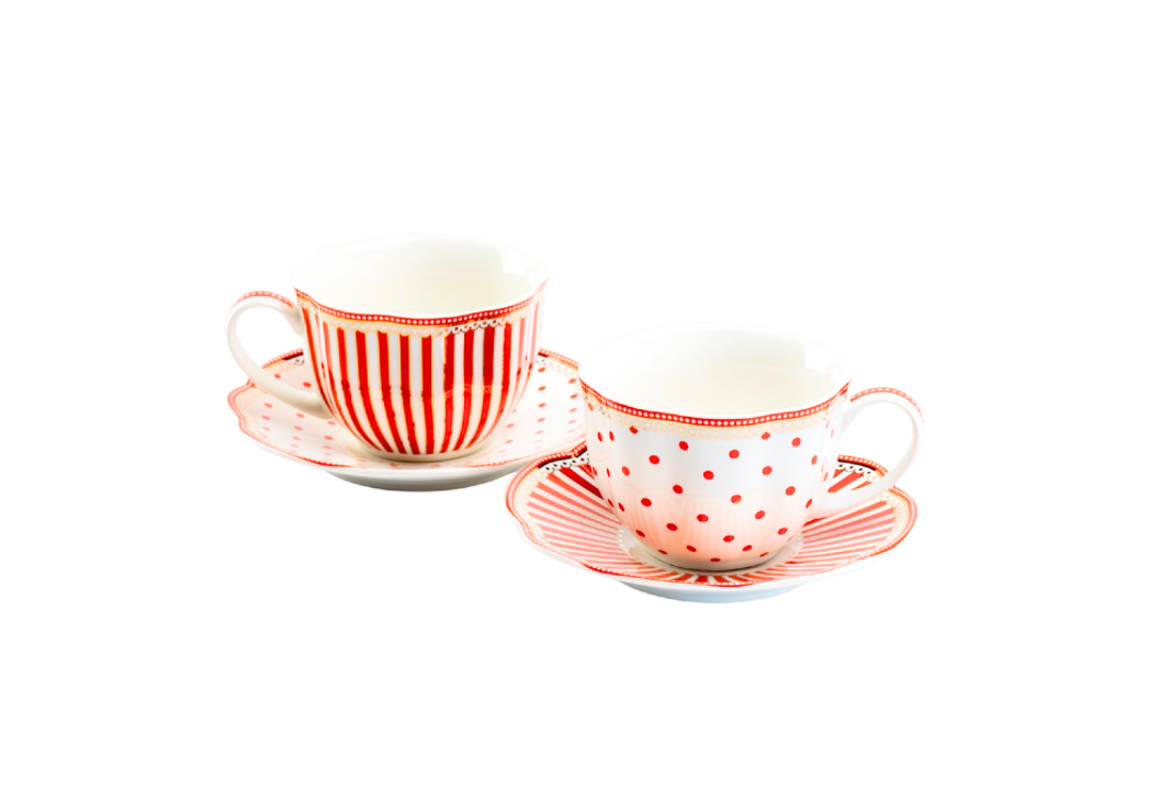 Red Josephine Stripes and Dots Fine Porcelain Cup and Saucer Sets