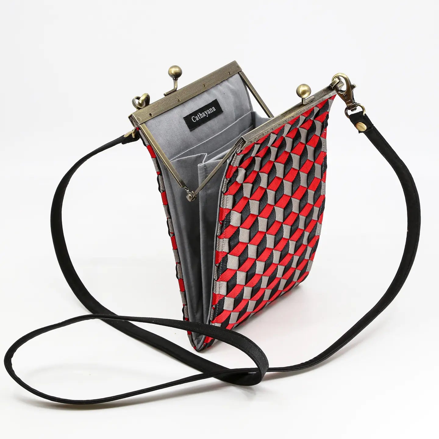 Geometric Woven Ribbon Crossbody Clutch Bag