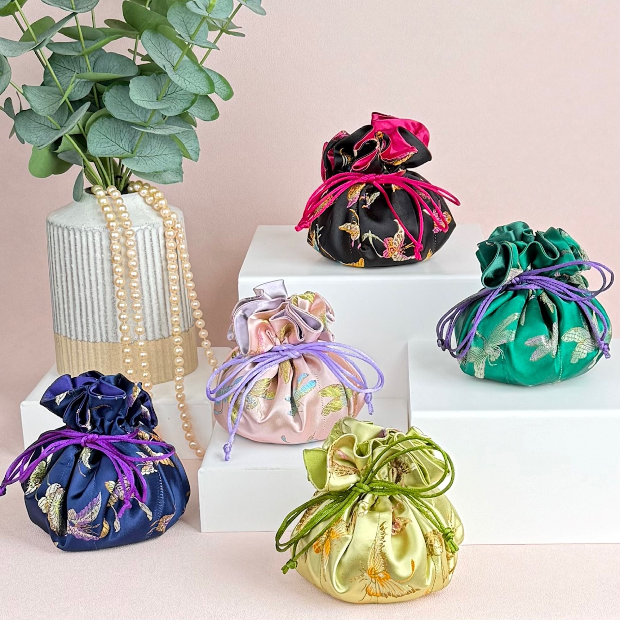 Butterfly & Dragonfly Pattern Brocade Jewelry Pouch