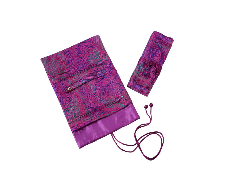 Peacock Feather Brocade Jewelry Roll - Multiple Colors