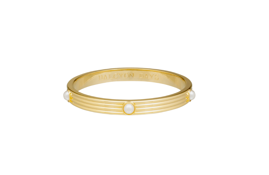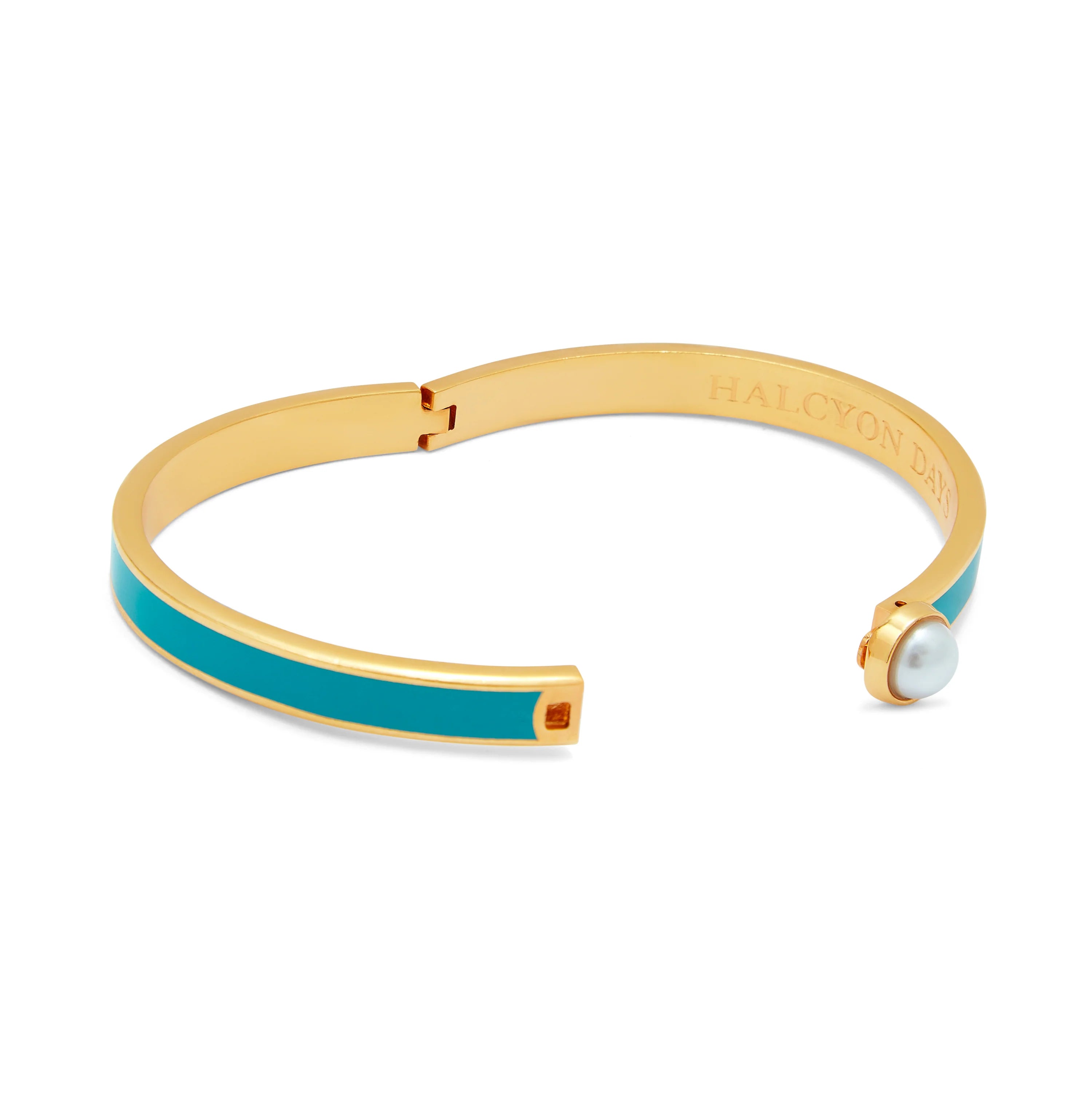Skinny Cabochon Pearl Turquoise & Gold Bangle