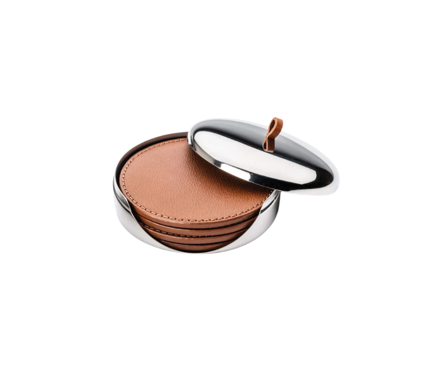 Sky Leather Coaster Set — Stainless Steel Case
